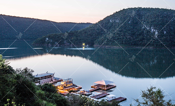 Jozini Tiger Lodge & Spa aerial shot of the boats and dam