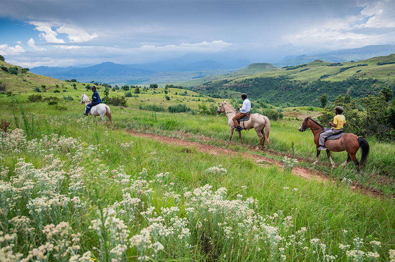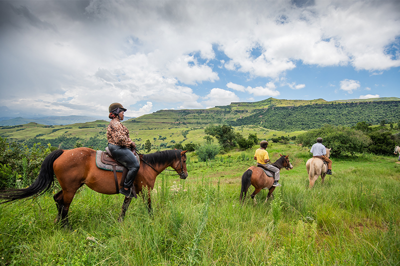 Experience the stillness of the Berg from horseback as you ride through open grasslands and mountain terrain.